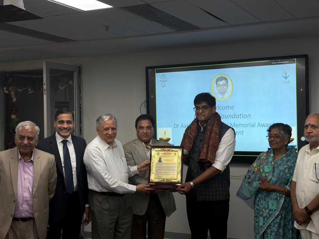 The Pragyaan Sustainable Health Outcomes (PRASHO) Foundation, in collaboration with the Gudlavalleti family, conferred the Dr. Aashrai Sai Venkat Gudlavalleti Memorial Award (Neurological Sciences) 2026 on Dr. Lokesh Saini (AIIMS Jodhpur) at a felicitation ceremony held on 12 March 2026 at the Kapil Kavuri Hub, Hyderabad.